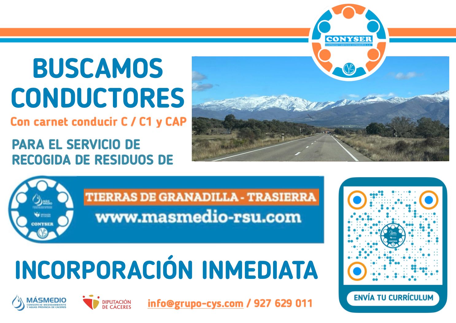 Oferta de empleo para el servicio de recogida de residuos solidos urbanos, por la que buscan conductores con carnet de conducir C / C1 y CAP para incorporación inmediata